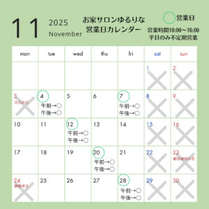 11月の営業日のお知らせ