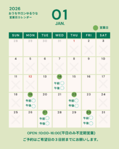 12月の営業日のお知らせです🌿 12月も平日のみ不定期ののんびり営業。さらに中旬以降、テスト休みや冬休みも始まるため、12月の営業日は3日だけですがよろしくお願いします。 ご都合の合う方、ぜひいらしてくださいね。 🌿12 […]